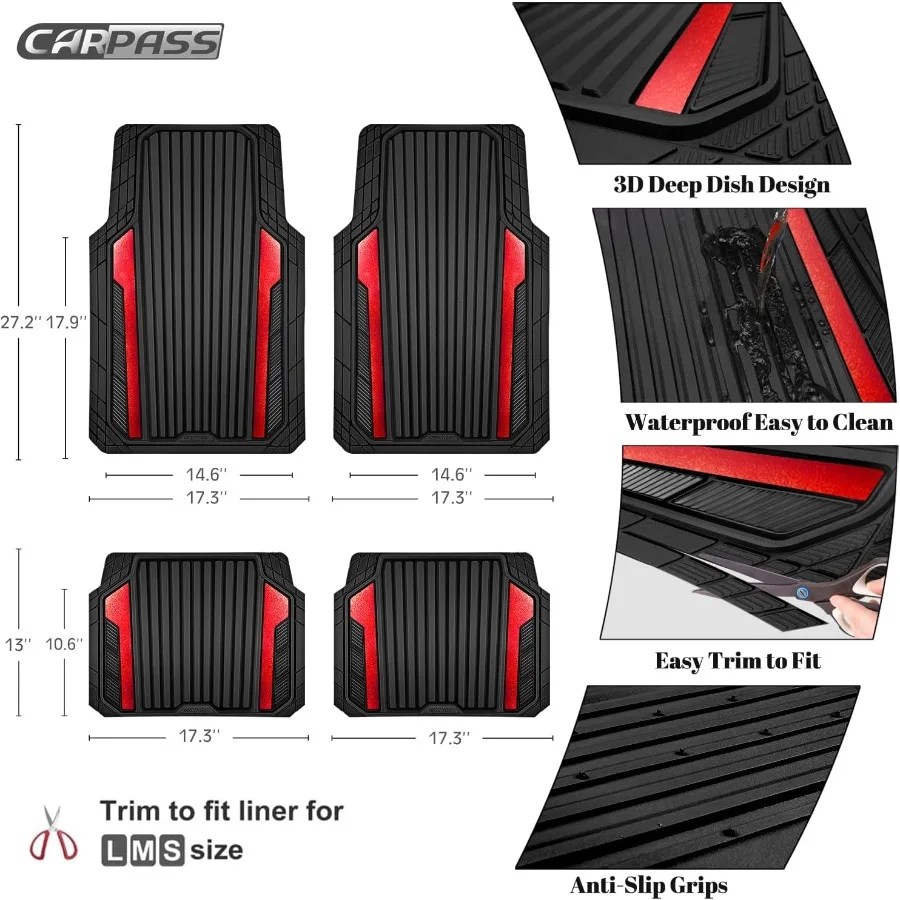 These heavy duty rubber car mats are designed for reliable all-weather protection.