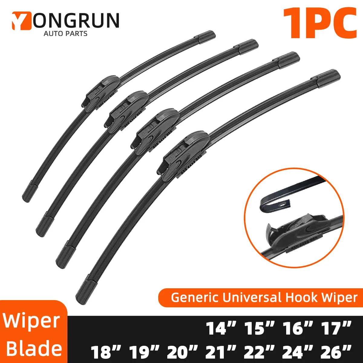 This universal front wiper blade is designed with a J/U hook mounting system.
